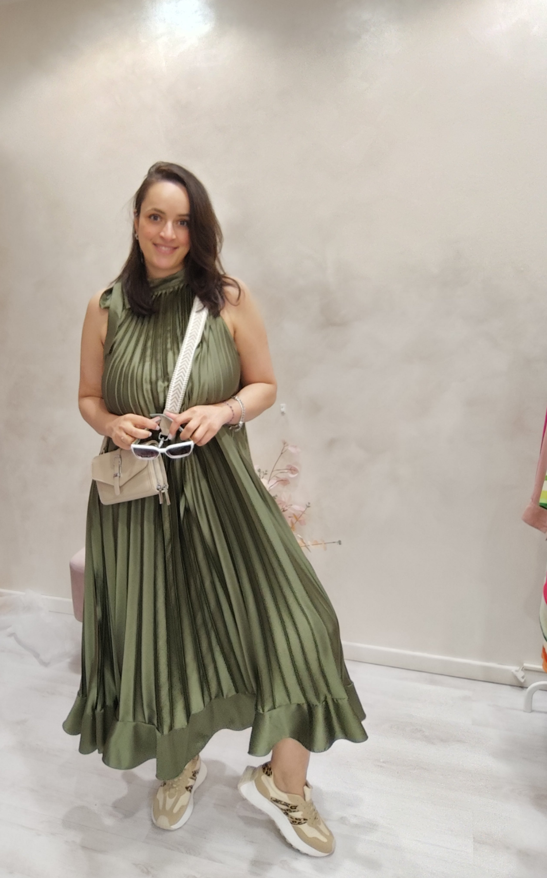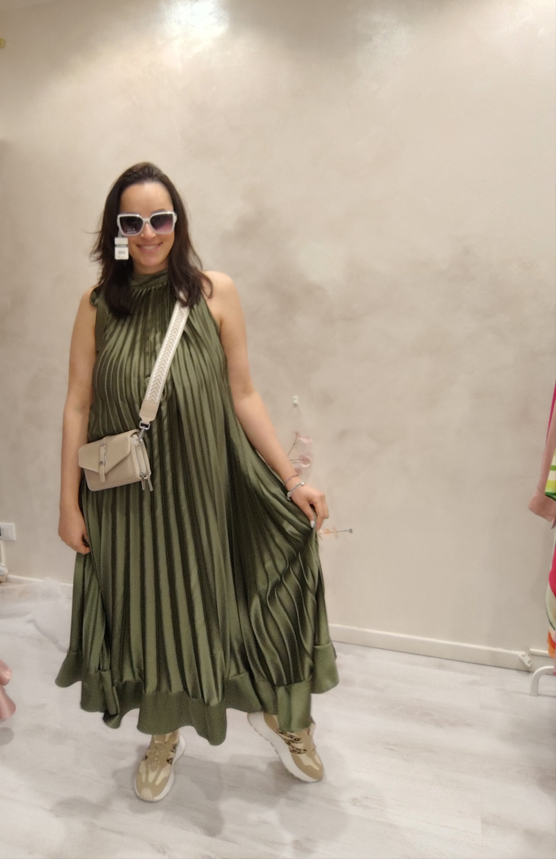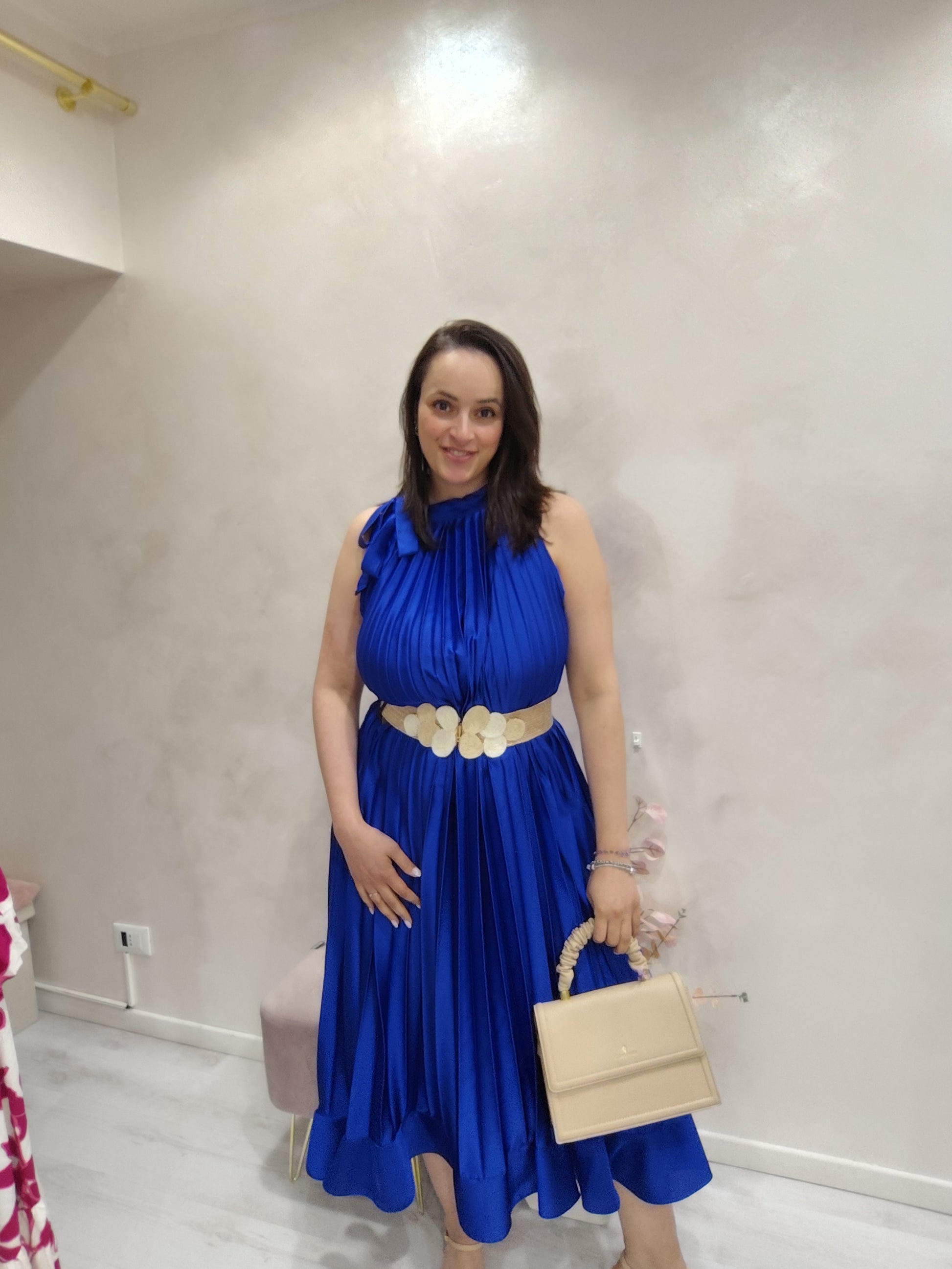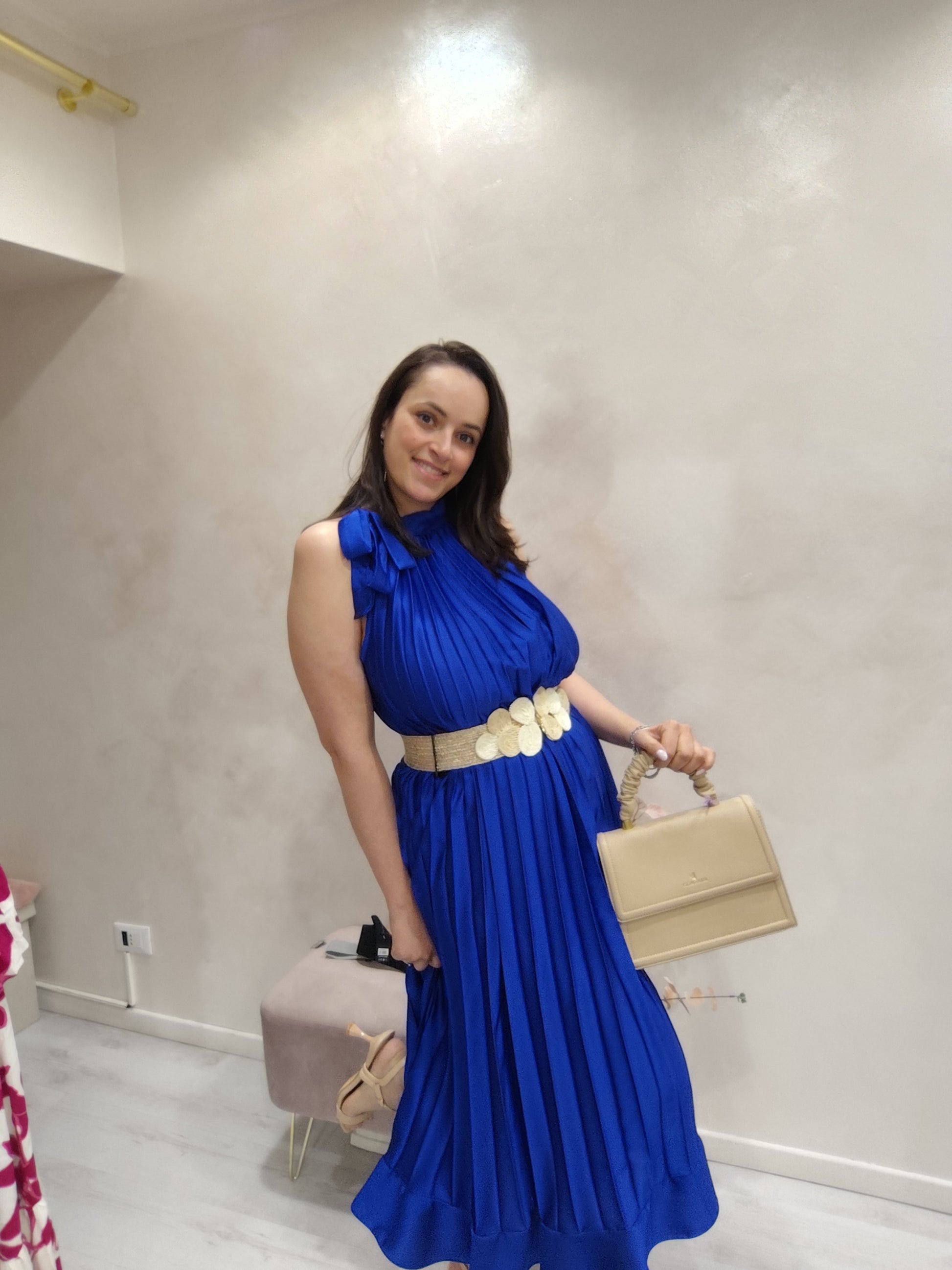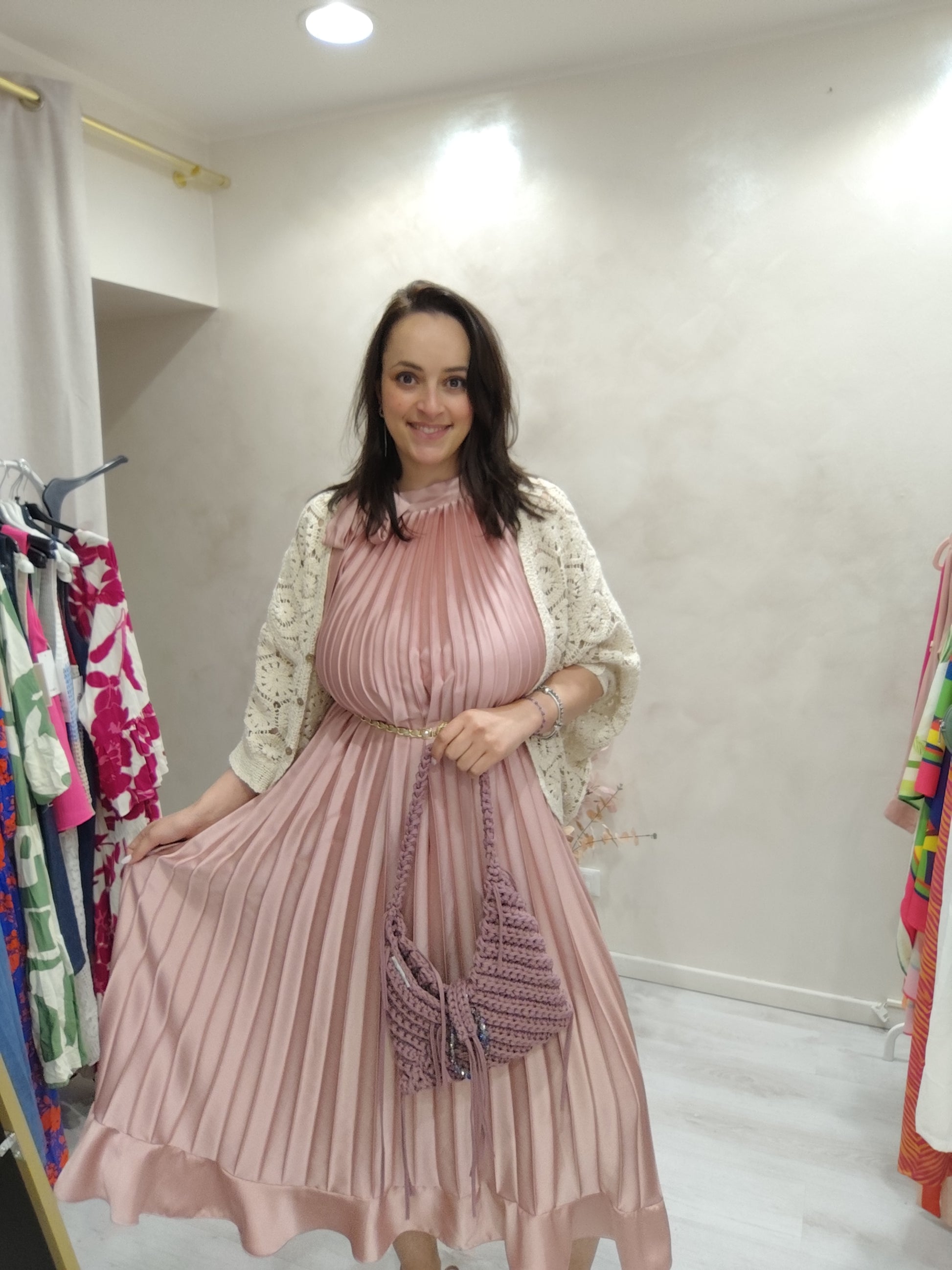 Abito lungo plissettato in raso