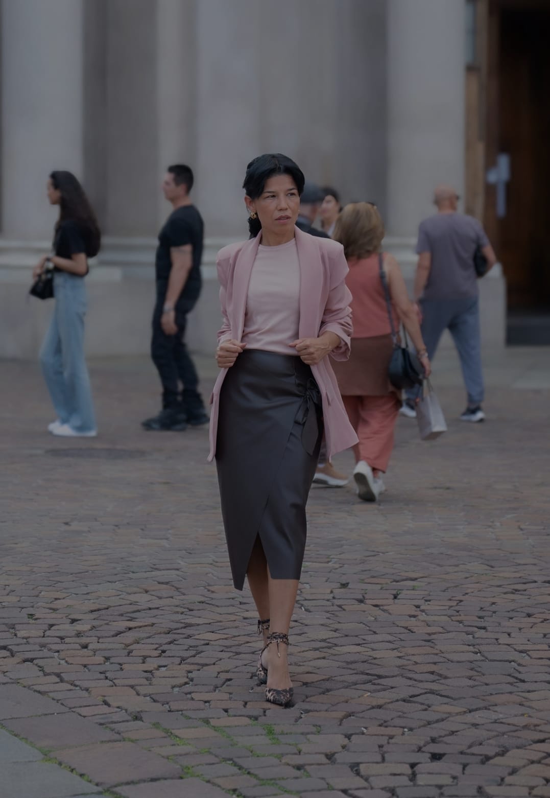 Gonna in ecopelle elasticizzato, con chiusura a portafoglio e apertura trasversale.